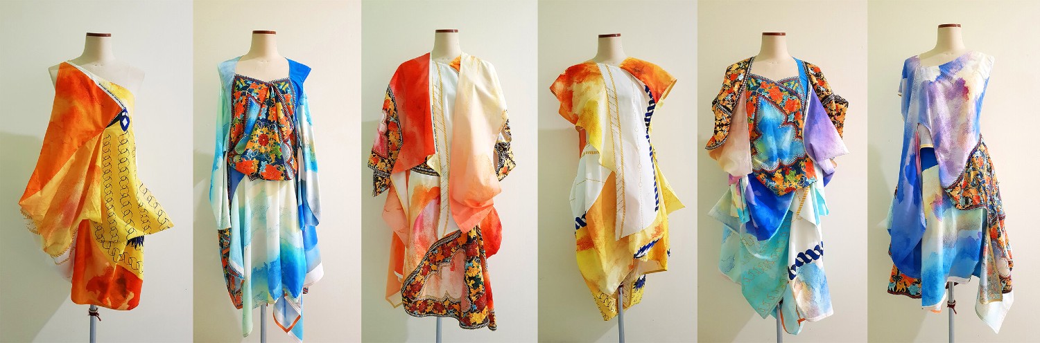 “Another example is Kwok Minh Yen’s collection 1.5oC. It expanded the notion of zero waste design by engaging in textile manipulation of leftover materials, turning these scraps of fabric into decorative elements in the collection. Minh Yen further worked with UV reactive threads and pigments, combining them with synthetic materials like mixed polyester/nylon organza.