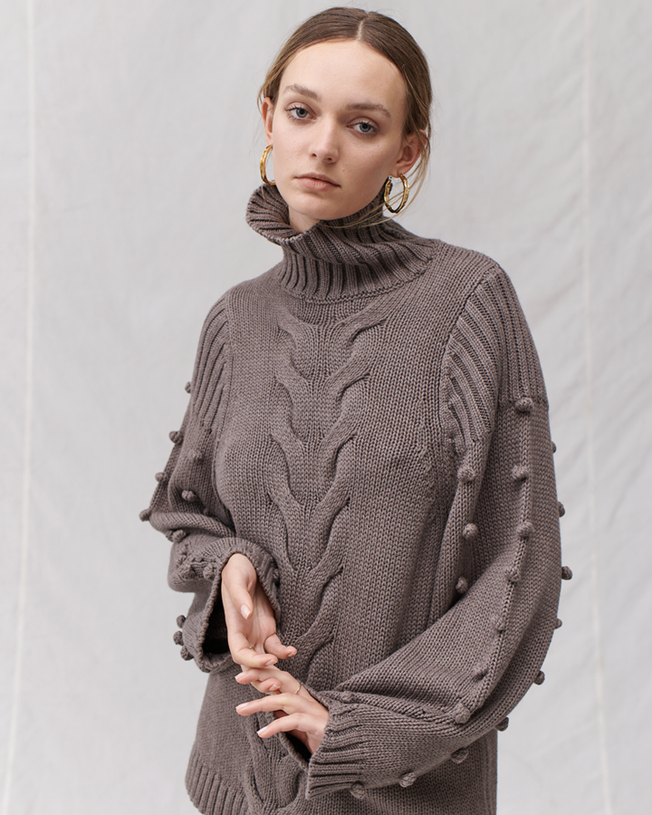 The use of muted colours – neutrals, blacks, greys and warm browns – ensures that these garments are not trend focused. The oversized shapes also mean that Amano knitwear suits all body types and sizes.