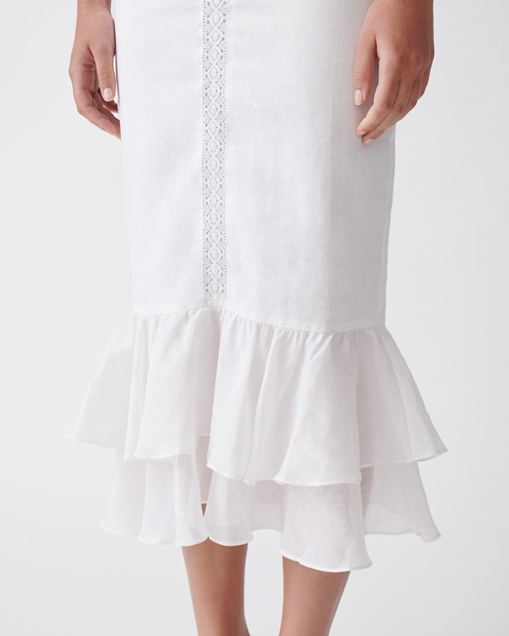 The brand’s aesthetic is based on the designer’s artist parents and features feminine details like smocking, ruffles, pintucks and buttons in Joslin’s signature linen. But what the brand is really known for is its comprehensive dedication to producing sustainable and ethical fashion.